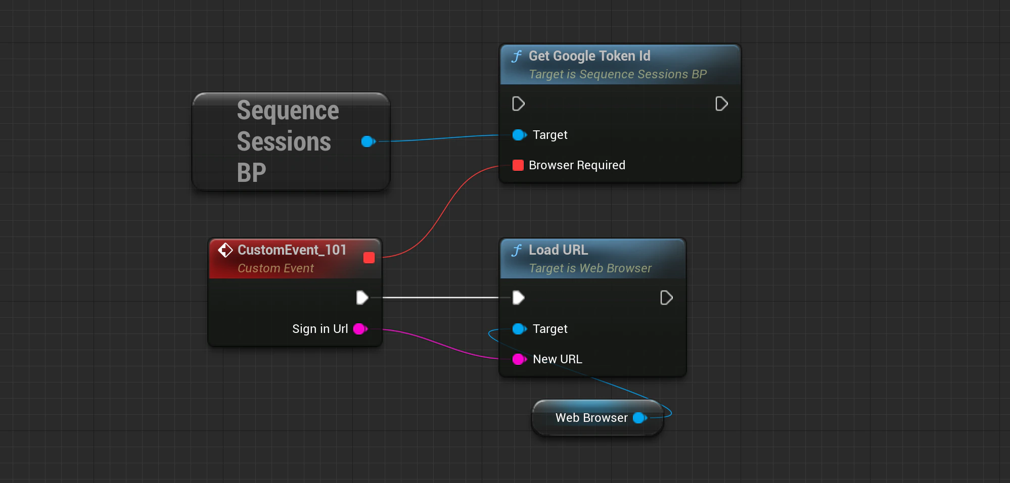 Get Google Token Id関数を呼び出します。iOSやAndroidの場合は、ネイティブプラグインを利用してidトークンを管理し、処理完了後にIdTokenReceivedイベントが呼ばれます。MacやWindowsで開発・ビルドする場合は、Browser PluginでSign In Urlを処理する必要があります。