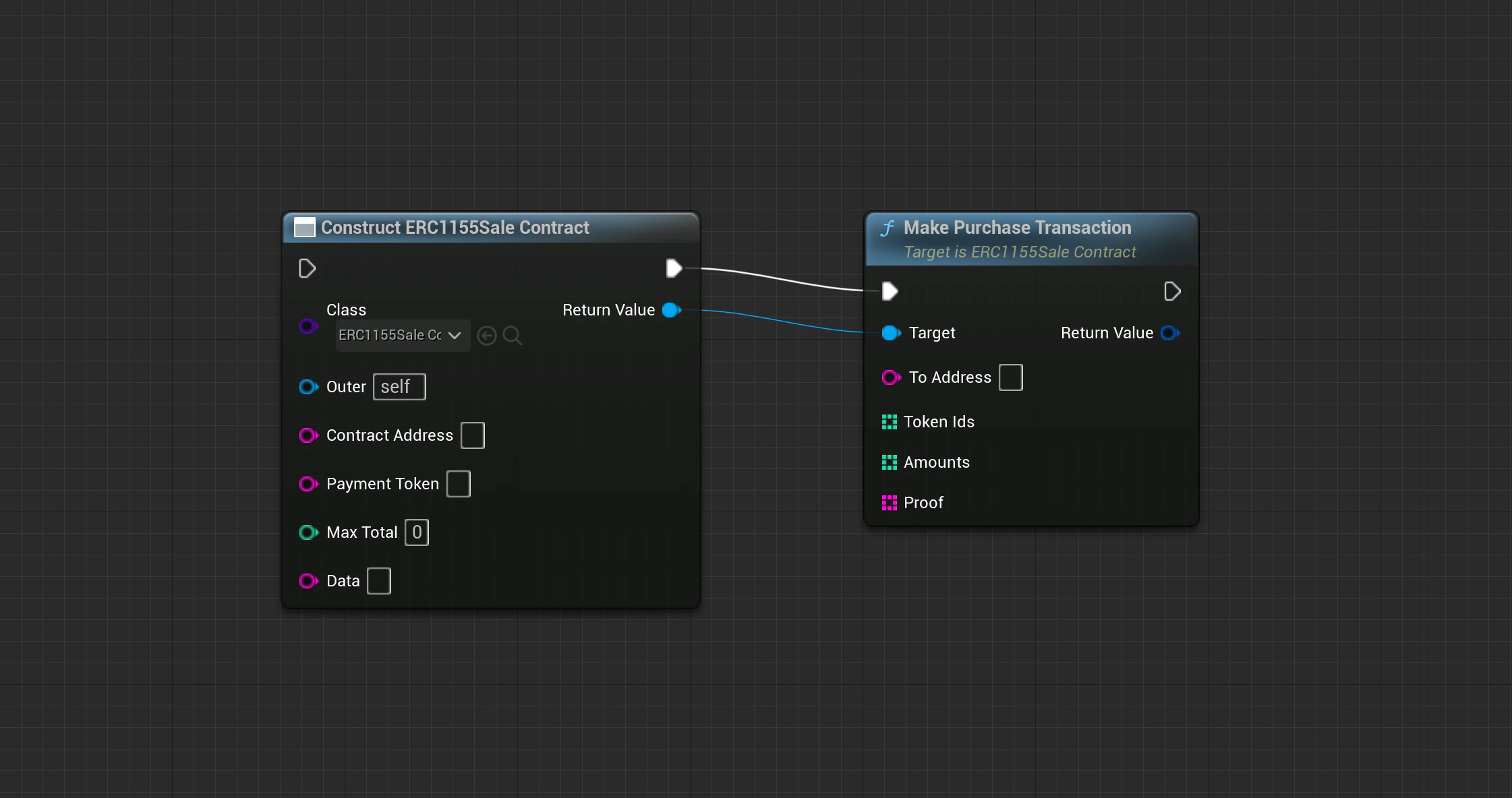 カスタム通貨のトランザクション作成用にERC721販売オブジェクトを構築します。- ブループリント