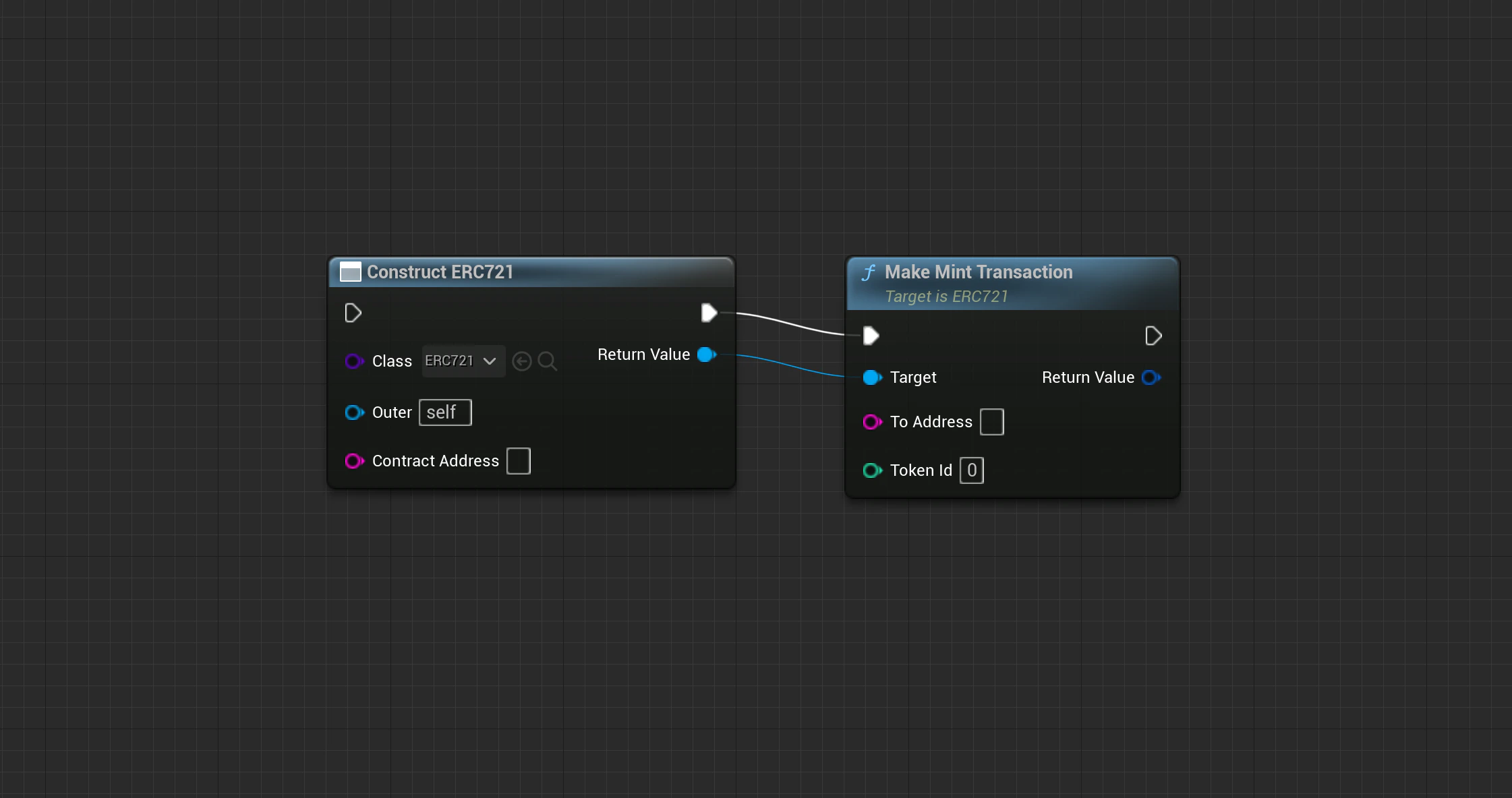 ERC721オブジェクトを作成して、ノンファンジブルトークンのトランザクションを生成します。- ブループリント