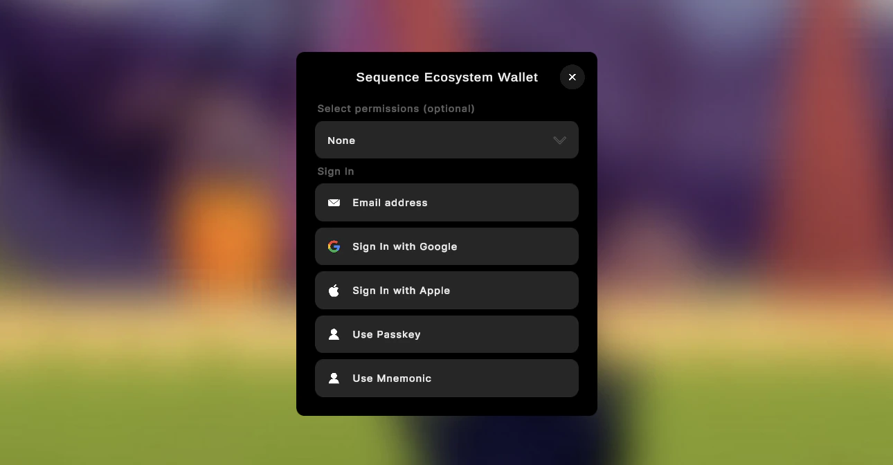 parent (Transform)Transform inside of a Canvas object.wallet (IWallet)The wallet instance you receive from the SequenceWallet.OnWalletCreated event after completing the login process.chain (Chain)The chain type (Ethereum, Sepolia, ..) on which the specified contract is deployed.apiUrl (string)The API url you receive after deploying the required server boilerplate.onClose (Action)Optional. Callback when the user closes this window.