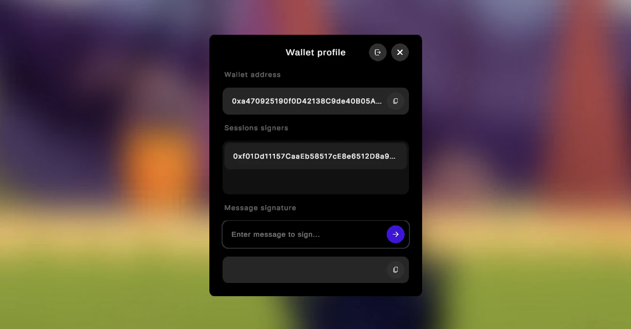 Create theEcosystemWalletProfile prefab to sign messages, add more sessions and view wallet details.