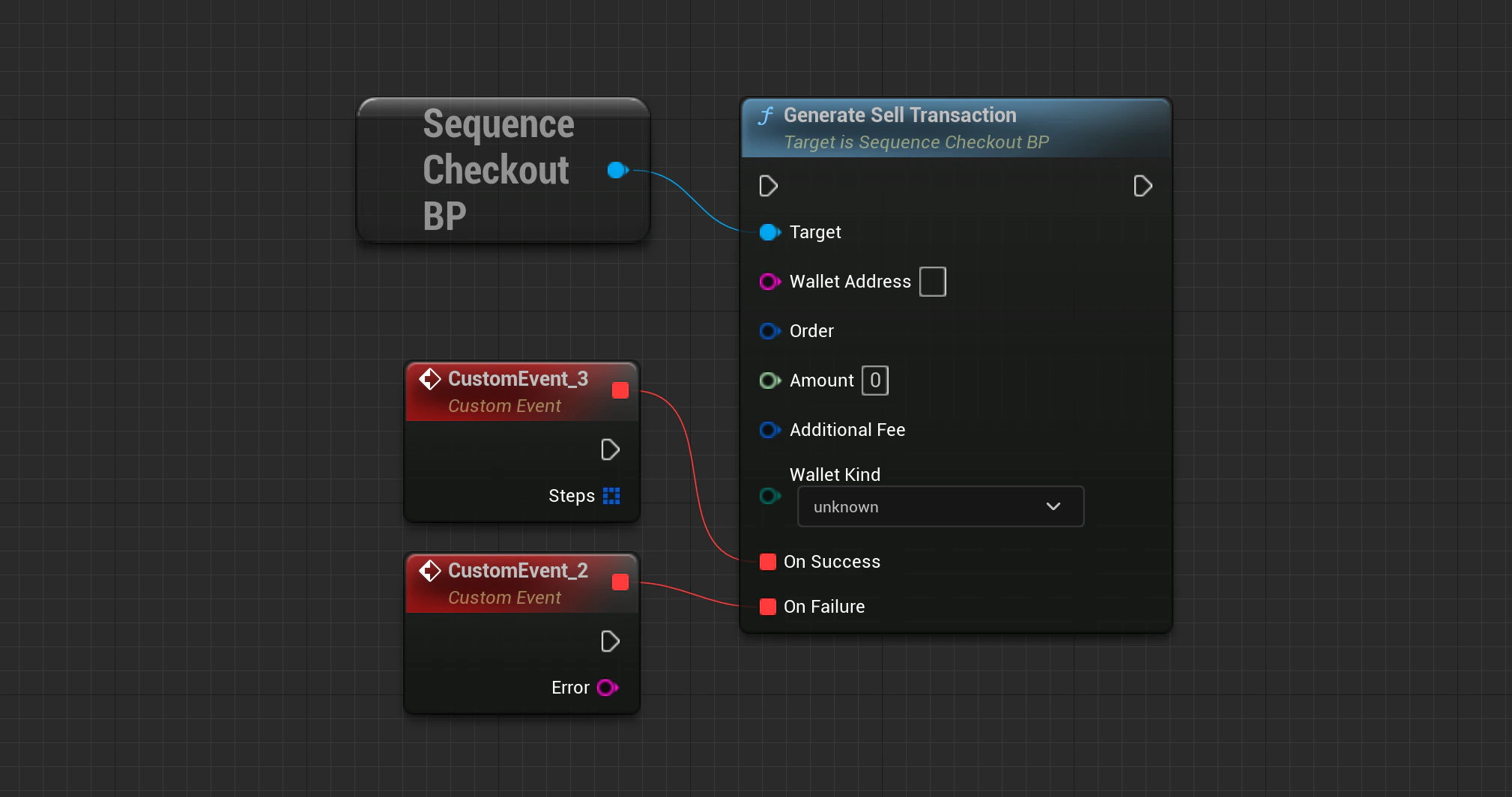 Checkout->GenerateSellTransaction(SequenceSdk::GetChainId(), WalletAddress, Order, Amount, AdditionalFee, WalletKind, OnApiSuccess, OnApiFailure);