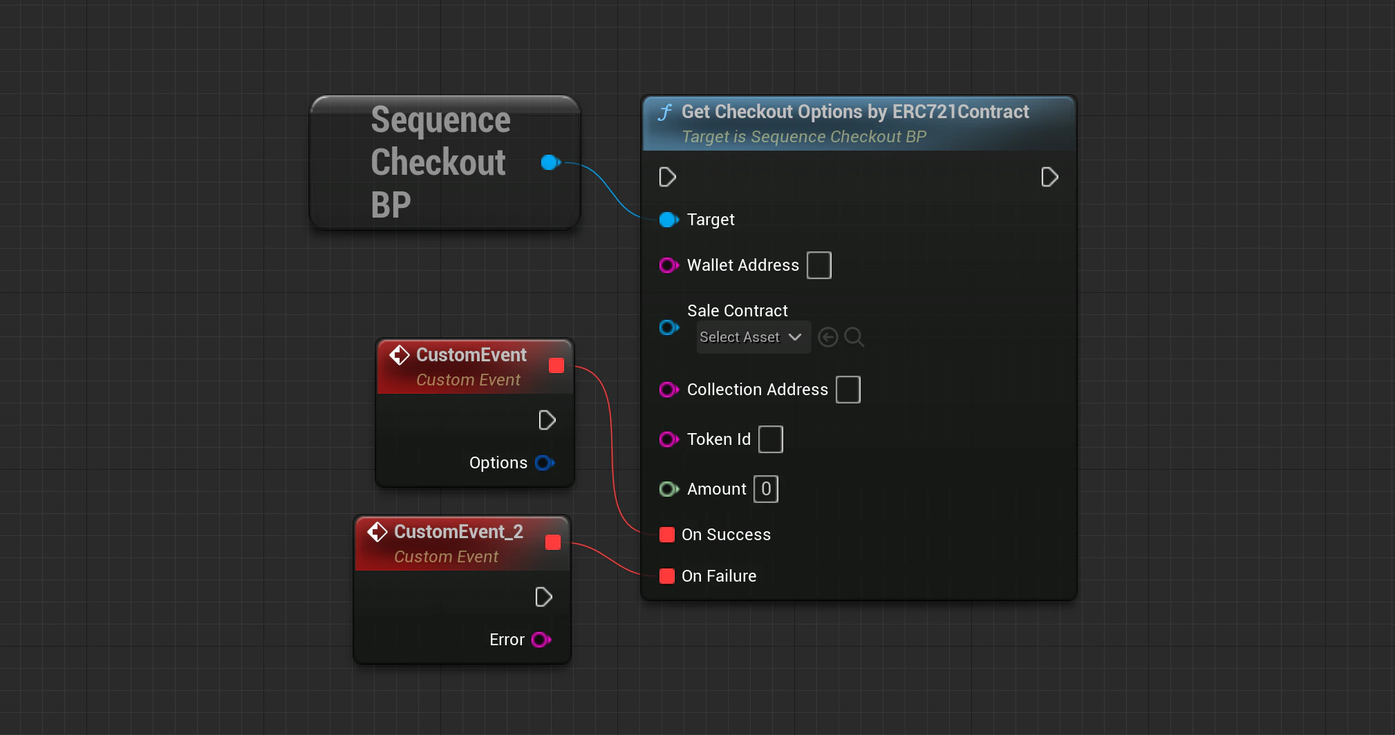 Checkout->GetCheckoutOptionsByERC721Contract(SequenceSdk::GetChainId(), WalletAddress, SaleContract, CollectionAddress, TokenId, Amount, OnApiSuccess, OnApiFailure);