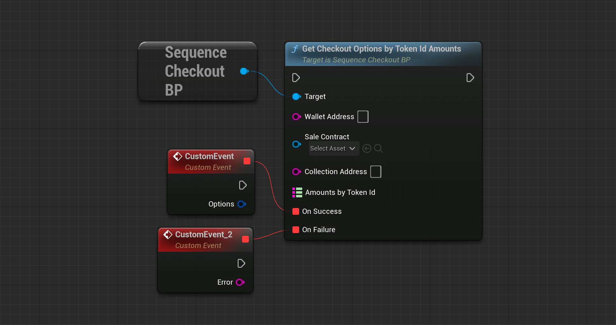 Checkout->GetCheckoutOptionsByTokenIdAmounts(SequenceSdk::GetChainId(), WalletAddress, SaleContract, CollectionAddress, AmountsByTokenId, OnApiSuccess, OnApiFailure);