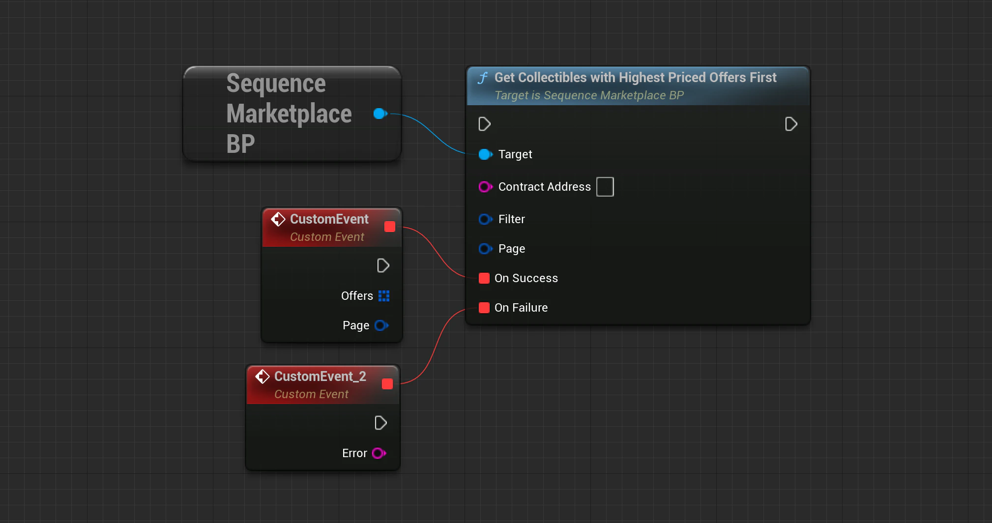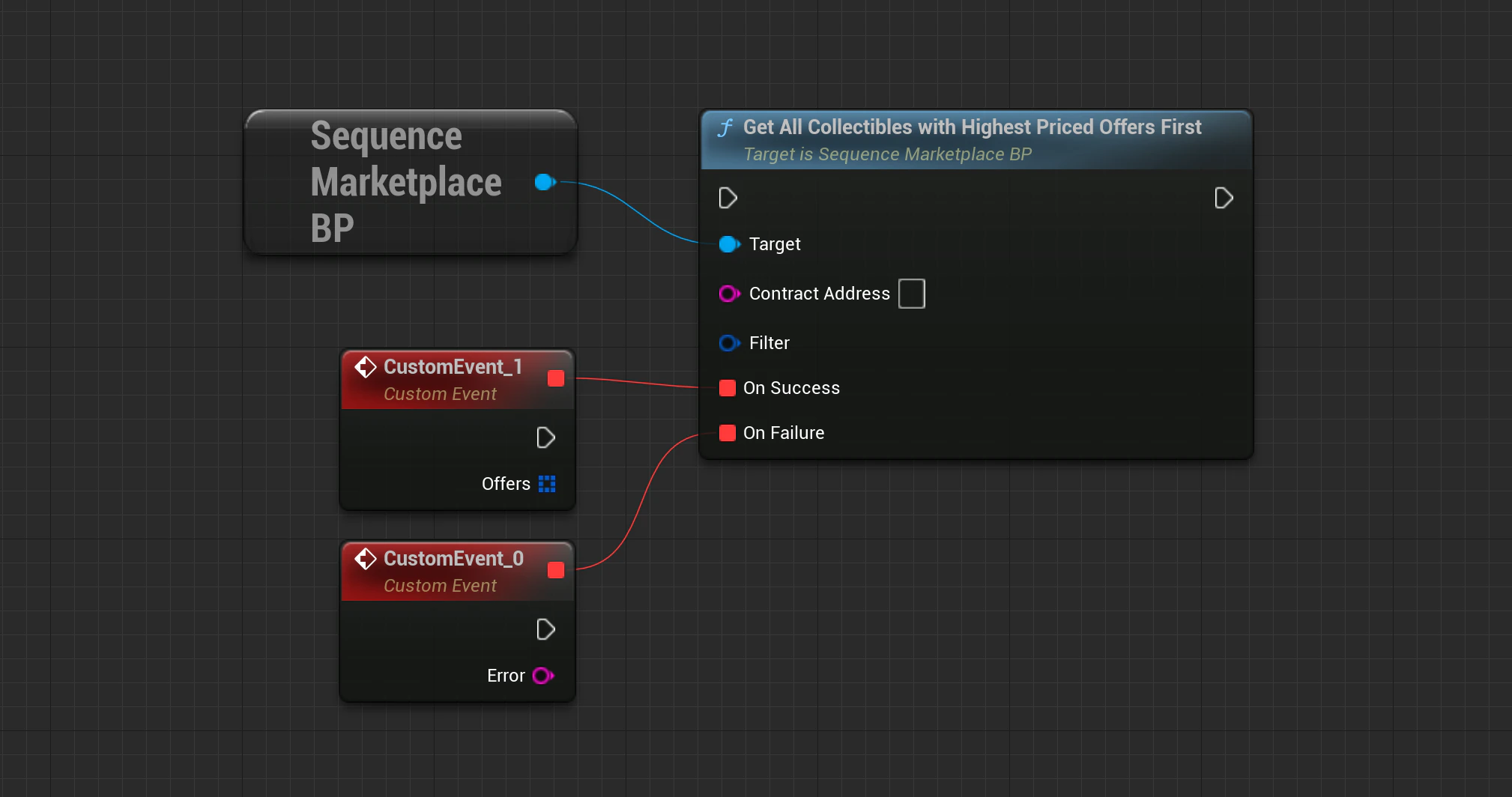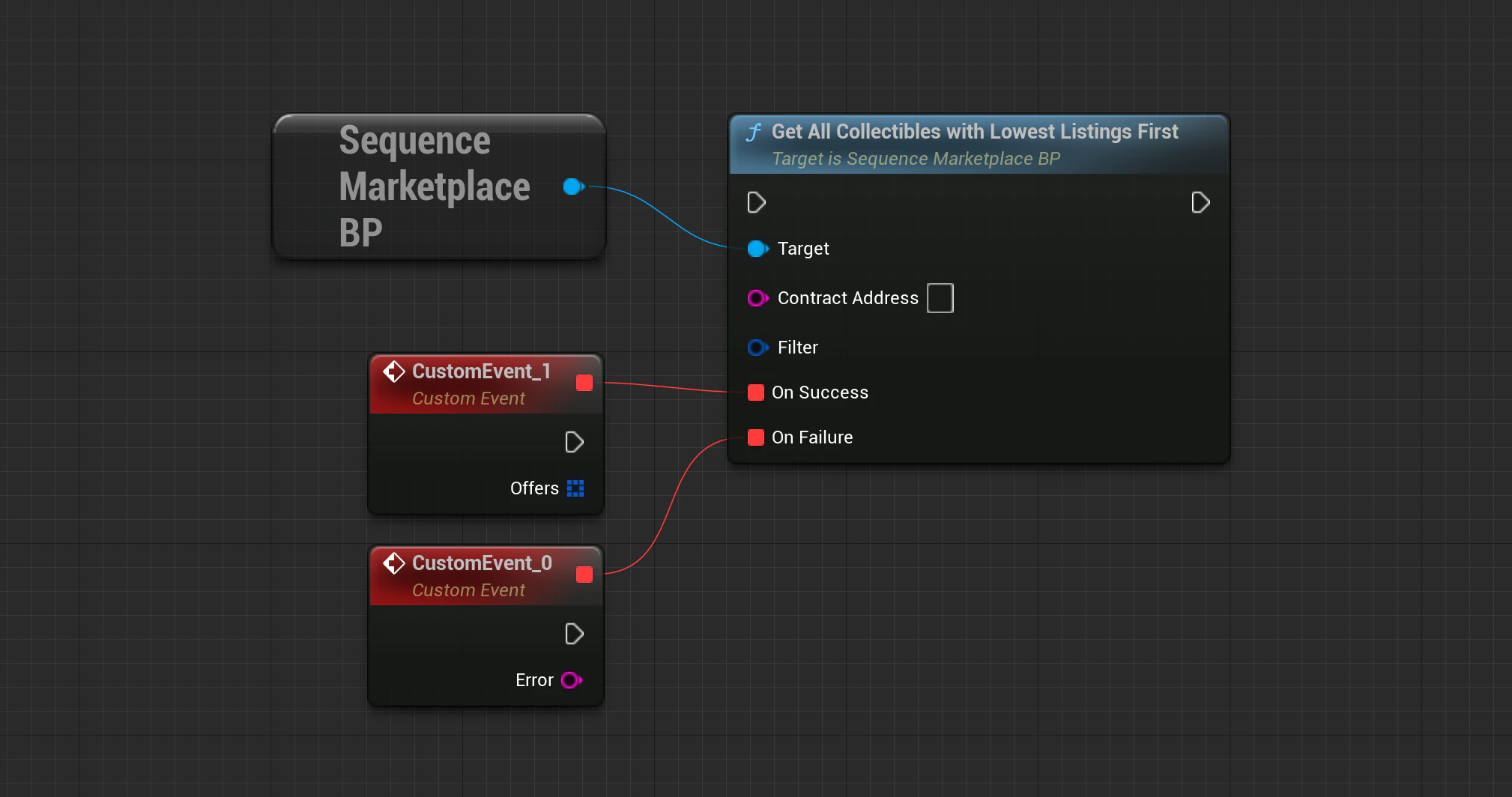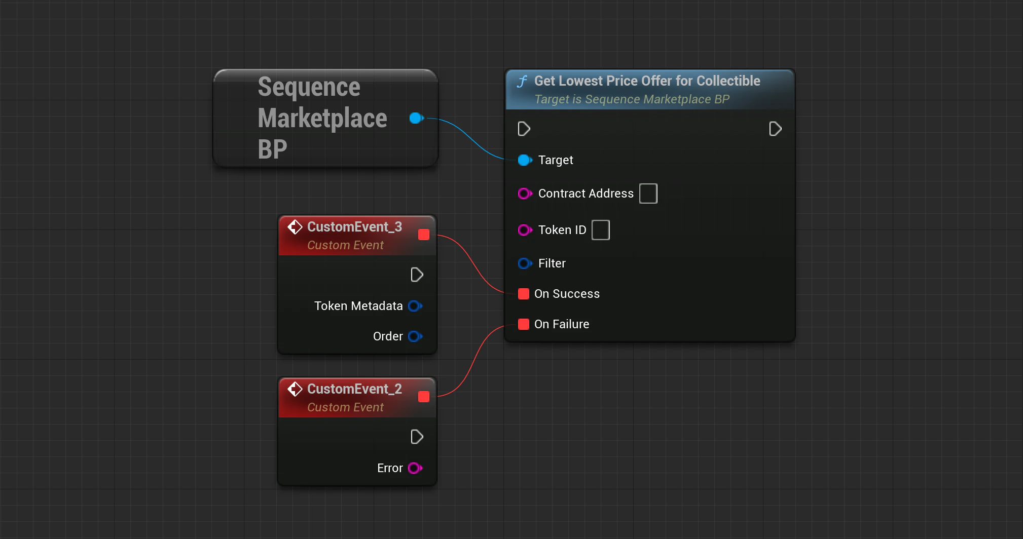 Marketplace->GetLowestPriceOfferForCollectible(SequenceSdk::GetChainId(), ContractAddress, TokenID, Filter, OnApiSuccess, OnApiFailure);