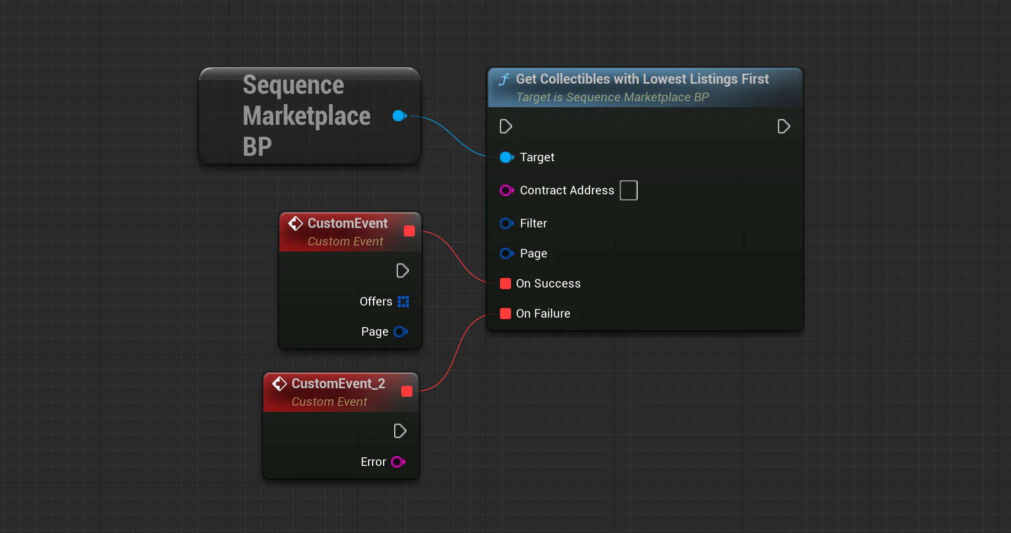 Marketplace->GetCollectiblesWithLowestListingsFirst(SequenceSdk::GetChainId(), ContractAddress, Filter, Page, OnApiSuccess, OnApiFailure);