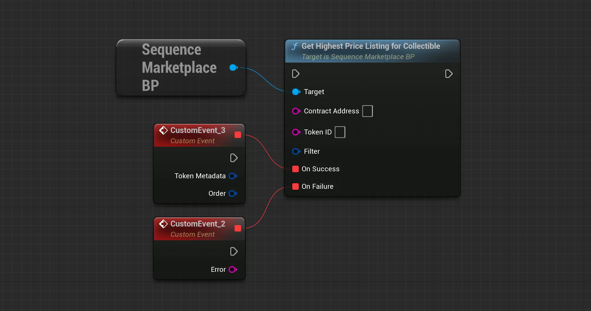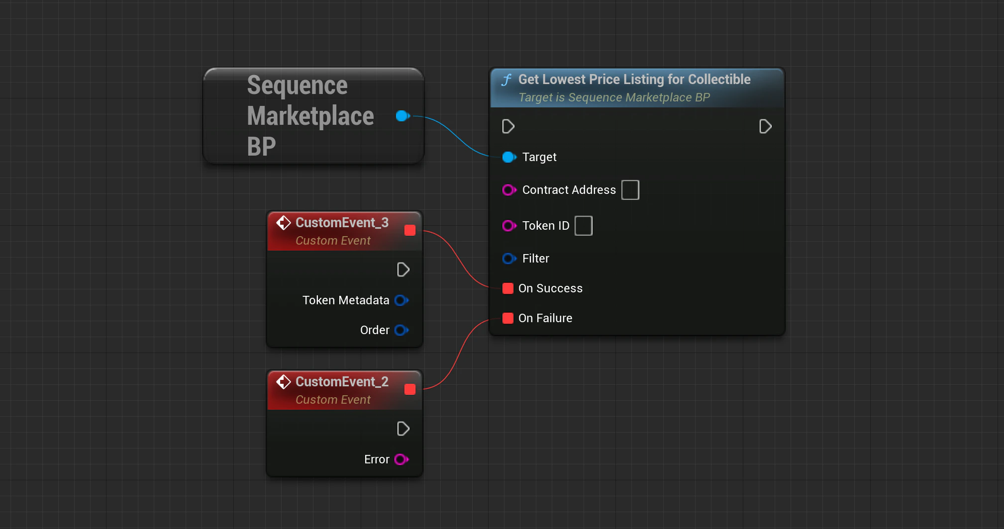 Marketplace->GetLowestPriceListingForCollectible(SequenceSdk::GetChainId(), ContractAddress, TokenID, Filter, OnApiSuccess, OnApiFailure);