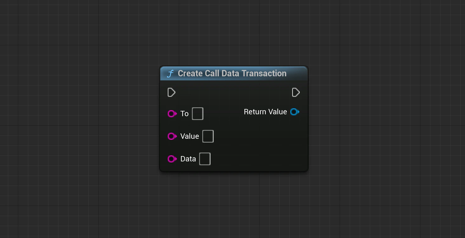 UCallDataTransaction* Transaction = UCallDataTransaction::CreateCallDataTransaction(To, Value, Data);