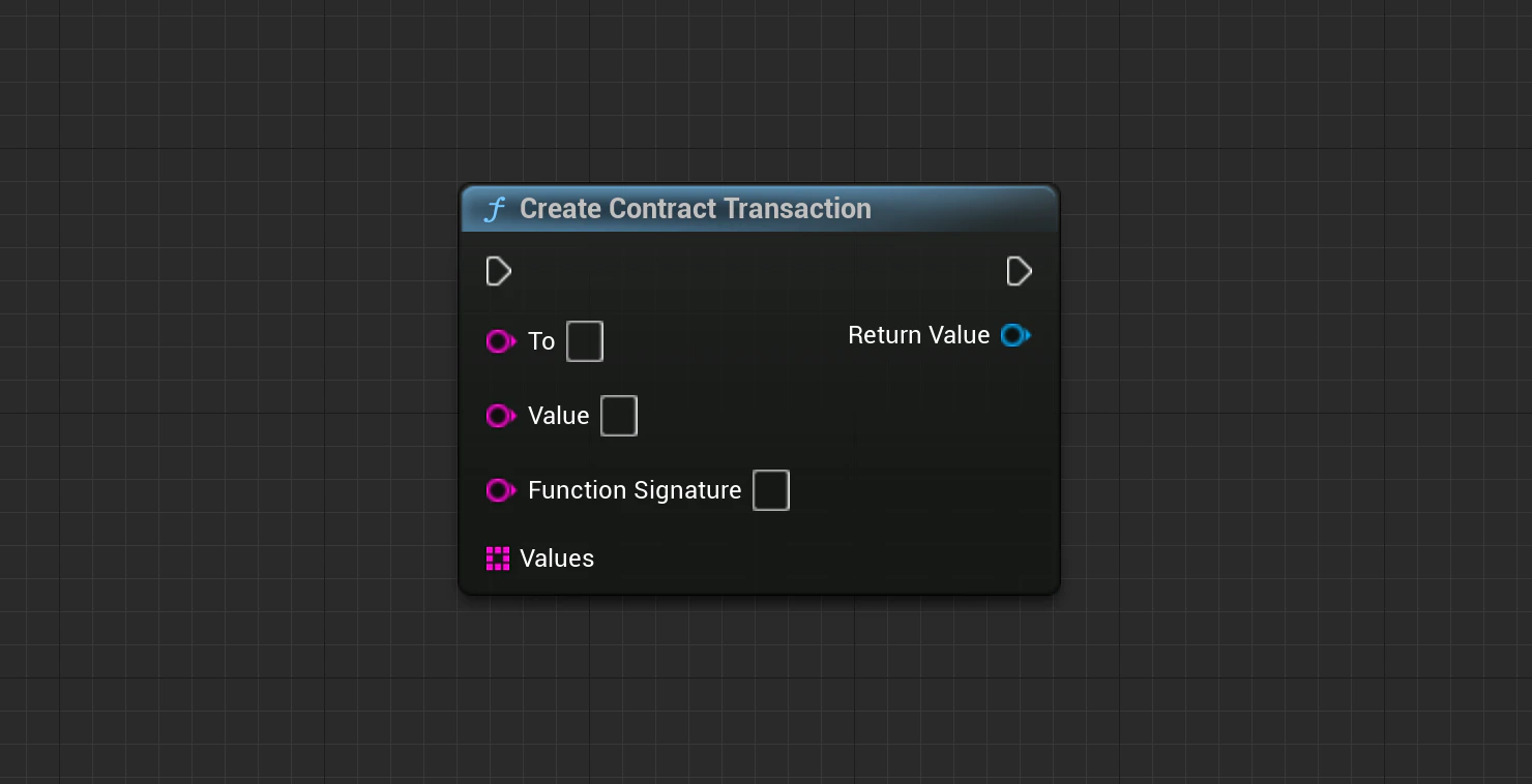 UContractTransaction* Transaction = UContractTransaction::CreateContractTransaction(To, Value, FunctionSignature, Values);